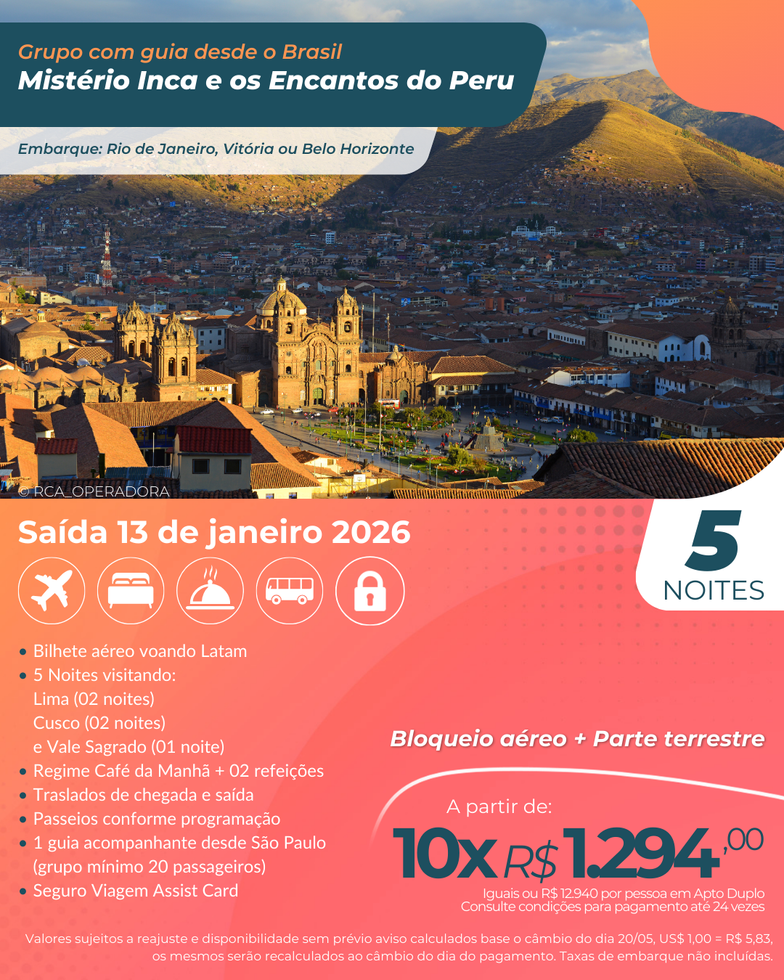 💫 Vivencie o mistério Inca, descubra Machu Picchu, deguste a culinária local e mergulhe na cultura peruana com conforto, segurança e excelente custo-benefício!