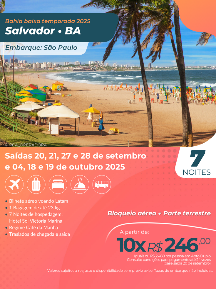 🏖 Bahia baixa temporada 2025! Aproveite nossas saídas!