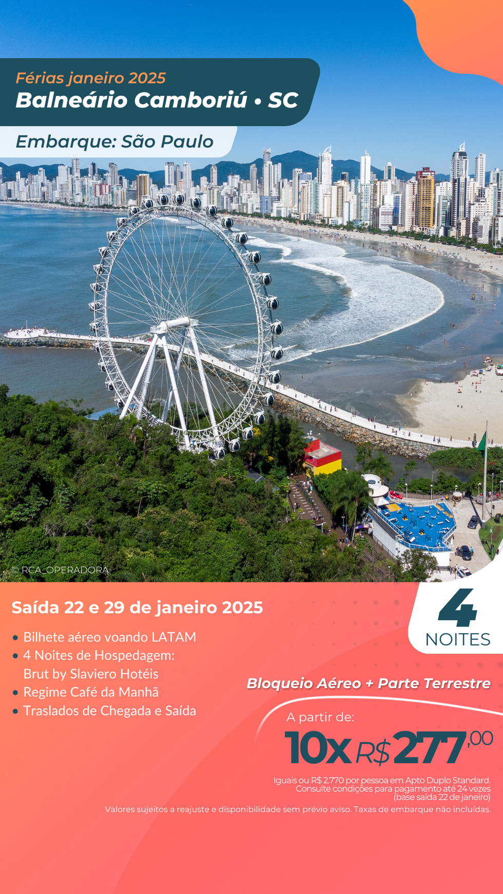 ✈ Especial Balneário Camboriú! Confira as melhores tarifas para as férias de janeiro 2025!