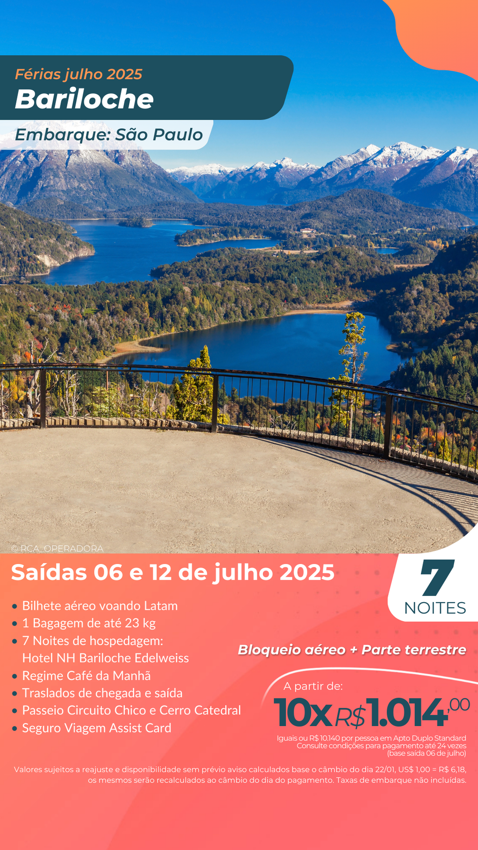 ✨Escolha seu destino e garanta as melhores tarifas para as férias de julho em Bariloche 🏝
