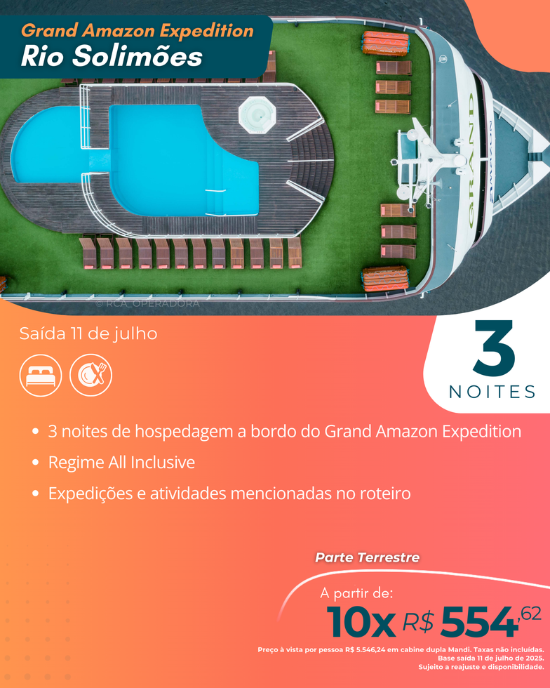 🚤 Embarque no Grand Amazon Expedition e explore o coração da Amazônia com todo o conforto e segurança. São roteiros All Inclusive, com expedições e atividades exclusivas.