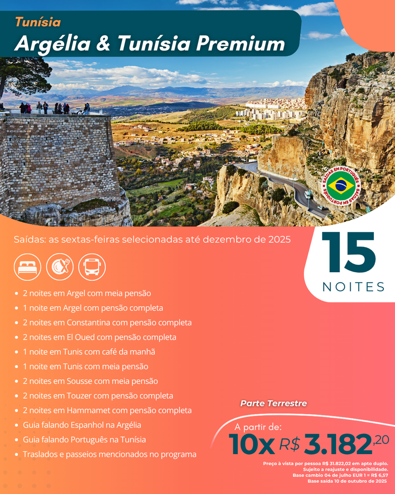 Roteiros exclusivos para viver experiências inesquecíveis entre o deserto, o mar e cidades cheias de história.🇹🇳 Com guias em português, conforto e cultura em cada detalhe.🧳