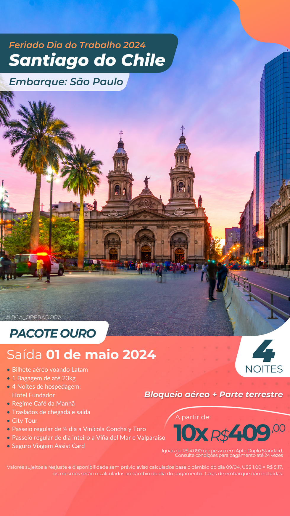Nossos pacotes incluem: passagem aérea desde São Paulo ✈ com 1 mala 23kg🧳, 4 noites hospedagem 🛌 com café da manhã 🍽 e traslados de chegada e saída, City Tour e Seguro Viagem Assist Card🚌.